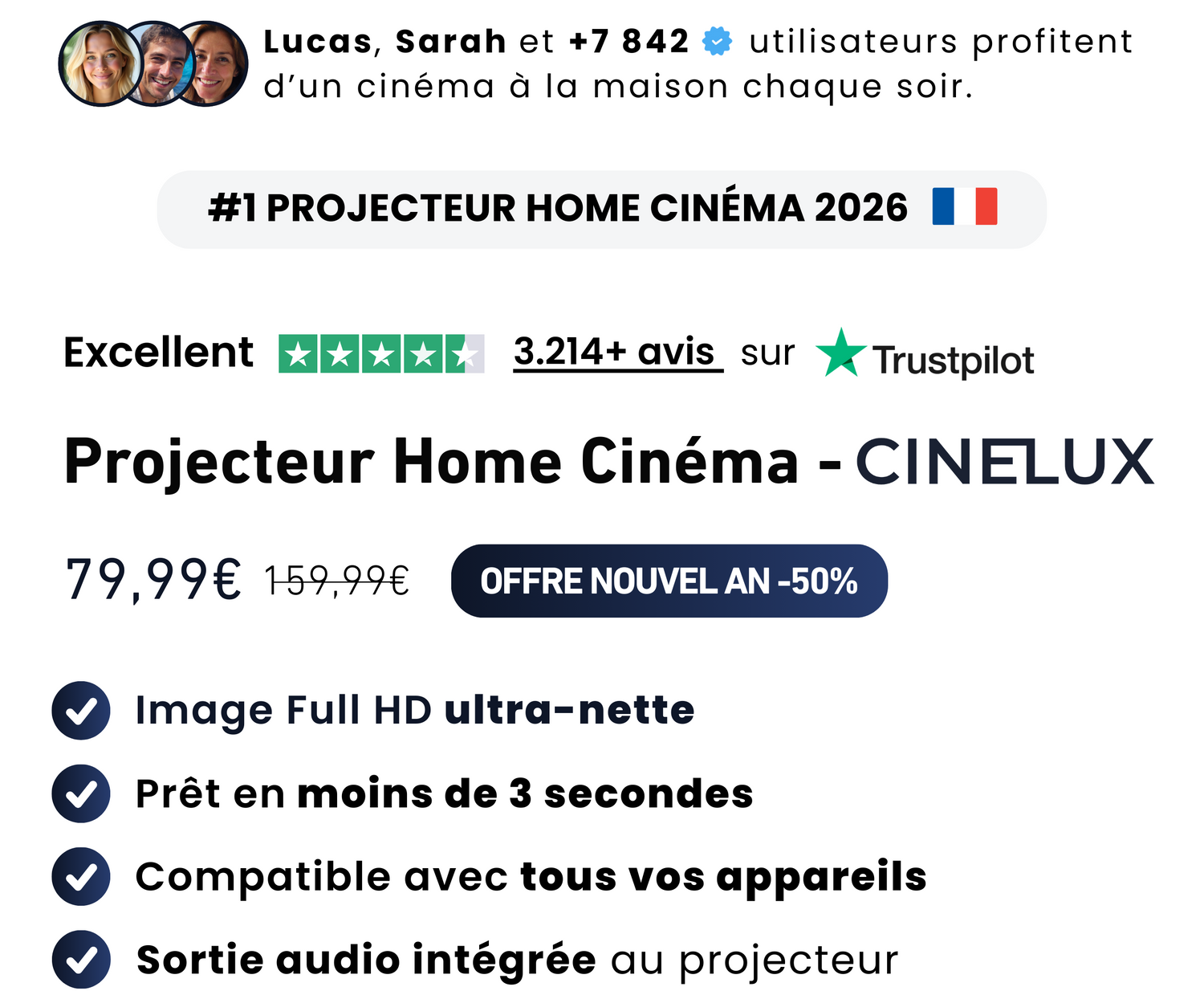 On cherchait une solution simple pour nos soirées films. Le projecteur a complètement changé l’ambiance à la maison, c’est devenu notre petit rituel du soir.
